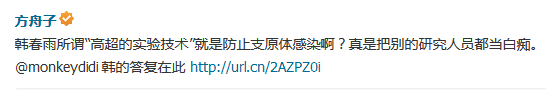 对于方舟子和网友们提出的质疑,韩春雨在该回复里进行了详解解答: