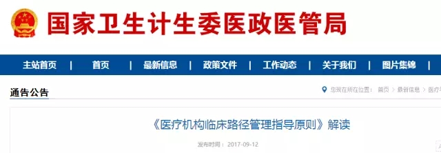 近日,国家卫计委下发了《医疗机构临床路径管理指导原则》(下文简称《指导原则》),并表明本指导原则自发布之日起施行,原《临床路径管理指导原则(试行)》(卫医管发〔2009〕99号)同时废止。