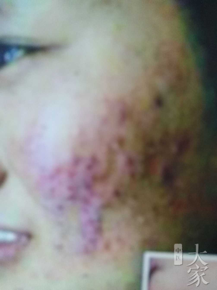 痤疮是一种毛囊、皮脂腺的慢性炎症性皮肤病,多发于青春期男女[1],多发于面颊、额及胸背部皮脂腺较多的部位。初期可见毛囊口处丘疹,可挤出乳白色脂栓,中医称之为粉刺。 一、病因病机:本病多因饮食、劳倦、情志所伤,导致人体脏腑阴阳失调。五志过极,耗血伤阴,阴虚火旺或阳盛之体,复感风邪,火热上蒸,迫血外溢,则见面颊、额及胸背部皮肤红斑。饮食伤脾,脾失健运,湿浊内生,湿热内蕴。火灼津液成痰,痰结成疹,丘疹色红肿痛,化腐成脓疱。火灼血中津液致瘀,痰瘀互结则成结节、囊肿、瘢痕。 二、辨证施治 1.肺经风热证:肺经郁热,复感风邪,火热上蒸,面部皮肤红斑;火灼津液成痰,痰结成疹。证见面颊、额及胸背部皮肤红斑,丘疹色红,疹状如粟,伴有口渴、便秘,舌红苔黄,脉数。治法:疏风宣肺,清热散结。方药:《医宗金鉴》枇杷清肺饮加减。方药组成:枇杷叶、桑白皮、黄芩、生栀子、浙贝母、天花粉、天葵子,桔梗、防风、白芷、野菊花、连翘、陈皮、甘草。 2.湿热蕴肤证:本证多因饮食伤脾,脾失健运,湿浊内生,湿易化热,则成湿热,湿热蕴于机肤。证见面颊、额及胸背部皮肤油腻,丘疹红肿,疹状如黍,大者如豆,豆壁渗液,或成脓疱,多发于口周围,反复发作,伴有口臭、便秘、尿黄,舌红苔黄腻,脉滑数。治法:清热解毒,化湿利尿。方药:《伤寒论》茵陈蒿汤加减。方药组成:茵陈、生栀子、大黄、黄连、藿香、滑石、木通、石菖蒲、野菊花、连翘、茯岺、泽泻、甘草。 3.热毒痰结证:本证多因内郁湿热,外感风邪两相搏结,蕴于肌肤而成[2]。证见面颊、额及胸背部皮肤红斑、丘疹色红肿痛、脓疱、结节、口渴、便秘,舌红苔白厚或黄,脉弦或弦数。治法; 清热解毒,化痰散结。方药:自拟清热解毒化痰散结汤。方药组成:野菊花、连翘、防风、白芷、陈皮、赤芍、浙贝母、天花粉、天葵子、皂刺、山慈菇、甘草。 4 阴虚痰结证:本证多因欲念妄动或失血伤阴,阴虚火旺,火热上蒸,面部皮肤红斑;火灼津液成痰,痰结成疹。证见颧红唇赤,鼻周红斑,额、颧部皮肤丘疹色红,兼有潮热盗汗,手足心热,口干咽燥,或呛咳,舌红少苔,脉细数。治法:滋阴降火,化痰散结。方药:知柏地黄丸加味。方药组成:熟地、山药、山茱芋、茯苓、泽泻、丹皮、知母、黄柏、浙贝母、天花粉、天葵子、僵蚕、甘草。 4.气虚痰结证:本证多因饮食不节,损伤脾胃,脾失健运,痰湿内生,痰结成疹;脾虚气弱无力化痰散结。证见面颊、额及胸背部皮肤丘疹色白,疹状如粟,面色萎黄,神疲乏力,舌淡白苔白或白腻,脉虚。治法:健脾益气,化痰散结。方药:自拟益气化痰散结汤。方药组成:人参、白术、茯苓、黄芪、陈皮、浙贝母、僵蚕、皂刺、当归、甘草 5.热毒痰瘀证:本证多因火灼津液成痰,痰阻血瘀,或火灼血中津液致瘀,痰瘀互结日久则成结节、囊肿、瘢痕色紫红,《景岳全书》曰:“痰涎本皆气血,水谷津液化得其正则为津血,化失其正,则为痰浊”。证见面颊、额及胸背部皮肤丘疹、结节、囊肿、瘢痕色紫红,舌紫暗或有瘀斑或瘀点。治法:清热解毒,化瘀散结。方药:《金匮要略》桂枝茯苓丸加味。方药组成:桂枝、茯苓、赤芍、丹皮、桃仁、三棱、莪术、夏枯草、浙贝母、天花粉、天葵子、陈皮、鳌甲、牡蛎、甘草。 三、验案举例 李某,女,21岁,未婚,潍坊学院学生初诊2010年5月5日 主诉:面部丘疹2年,加重3个月。 现病史:患者2年前经前1—2天面部皮肤经常出现丘疹,以两颊较多,丘疹色红,月经后丘疹自然枯萎消退。近3个月来,经前7天面部开始出现丘疹,经期两颊、额及口鼻周围皮肤丘疹较多,呈散在性的发生,持续不退,丘疹色红肿痛时,口服头孢类药物很快好转,但迟迟不肯消退。 刻诊:患者14岁月经初潮,经期7天,周期26天,量多色暗红质稠,现已经净。面色潮红,口鼻周围皮肤红斑,两颊、额皮肤丘疹、结节色红,有多个脓包性丘疹,伴有肿痛,口有臭味,口渴便秘,舌红苔微黄,脉弦。 西医诊断:痤疮。中医辨证:痤疮热毒痰结证。治法:清热解毒,化痰散结。方药:自拟清热解毒化痰散结汤。方药组成:野菊花15g、连翘15g、防风15g、白芷15g、赤芍15g、陈皮15g、浙贝母15g、天花粉15g、天葵子15g、山慈菇15g、皂刺10g、甘草10g。水煎服一日一剂二次服。 5月10日复诊,服上药5剂,两颧部皮肤红斑消失,脓包性丘疹枯萎脱落,肿痛消失,皮肤还存有部分结节,舌红苔白,脉弦。上方去野菊花、连翘加夏枯草。水煎服一日一剂二次服。 5月20日复诊,服上药10剂,面部热毒痰结证已愈,结节消失,还存有三个凹陷性疤痕色淡红,舌淡红苔簿白,脉缓。处方:京制牛黄解毒片(同仁堂产)经前必要时服用,以防复发。 按:本例患者面部皮肤热毒痰结证,方中野菊花、连翘、赤芍、甘草,清热解毒以消红斑。陈皮、浙贝母、天花粉、天葵子、清热化痰散结以除丘疹。夏枯草、连翘、山慈菇、清热解毒消肿散结节。防风、白芷,解表散热毒。皂刺托毒外出。 预防本病复发:1.忌食辛辣刺激性食品,如辣椒、酒类。2.多食新鲜水果、蔬菜。3.保持大便通畅。4.禁止用手挤压粉刺,以免炎症扩散,愈后遗留凹陷性疤痕。 结 尾 中医药治疗痤疮,通过审证求因审因论治,疗效显著,能缩短病程,迅速改善症状,减轻身心痛苦,无不良反应。随着中医临床研究工作水平的不断提高, 座疮的治疗必将具有更广阔的前景。
